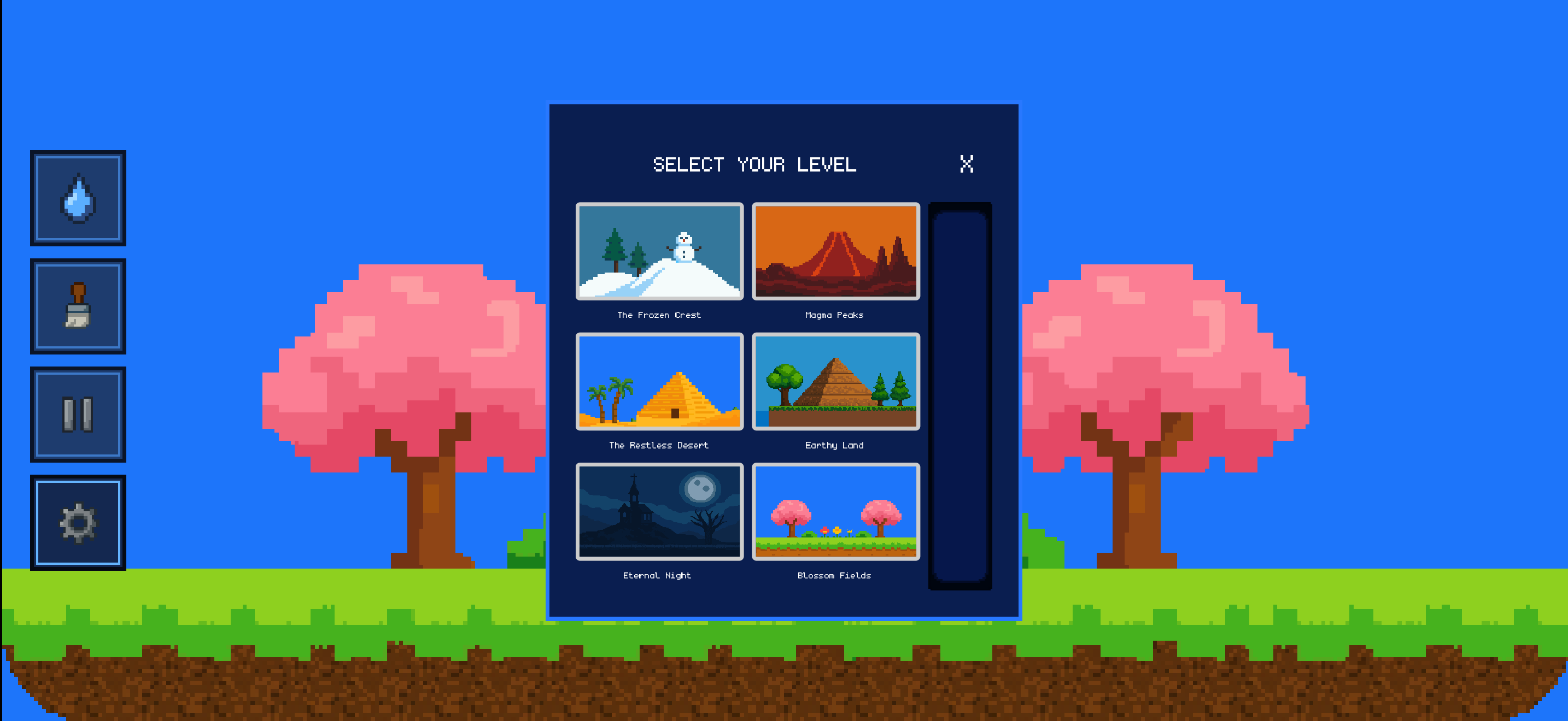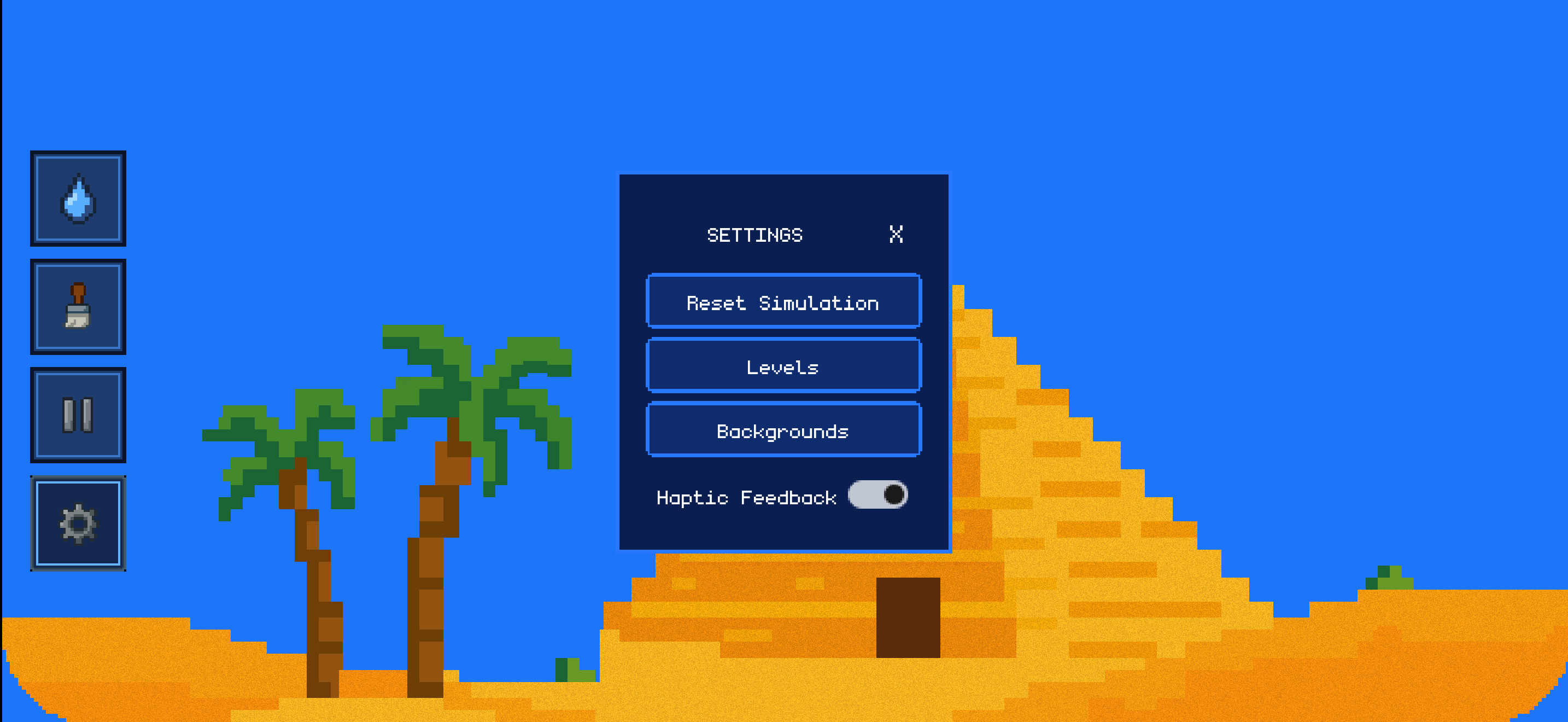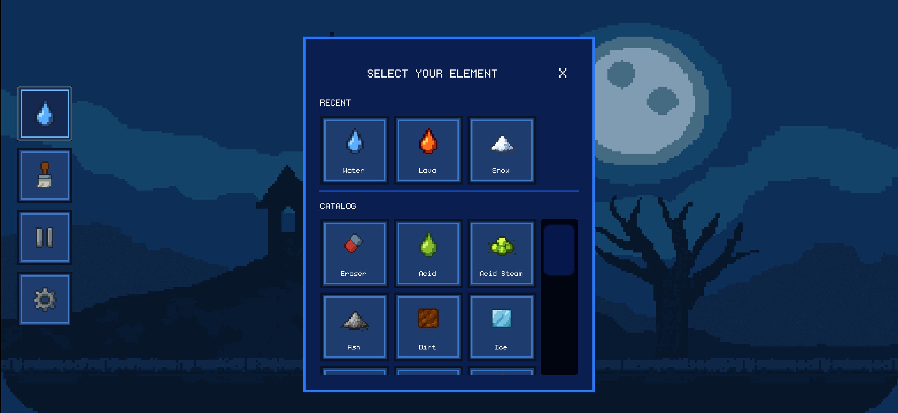 Sandbox – Experiment without limits, create your own pixel art, and see how elements interact.