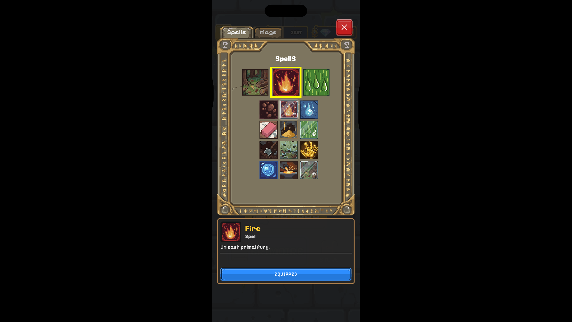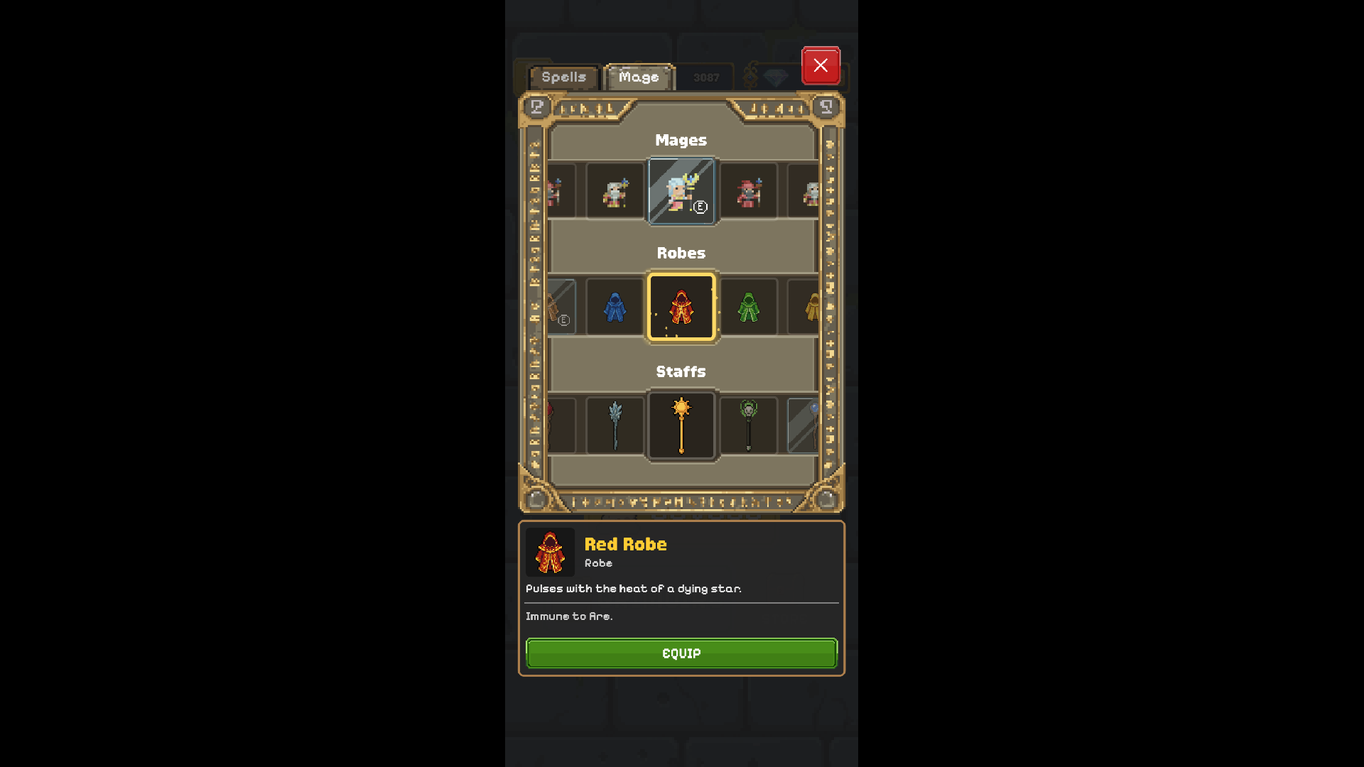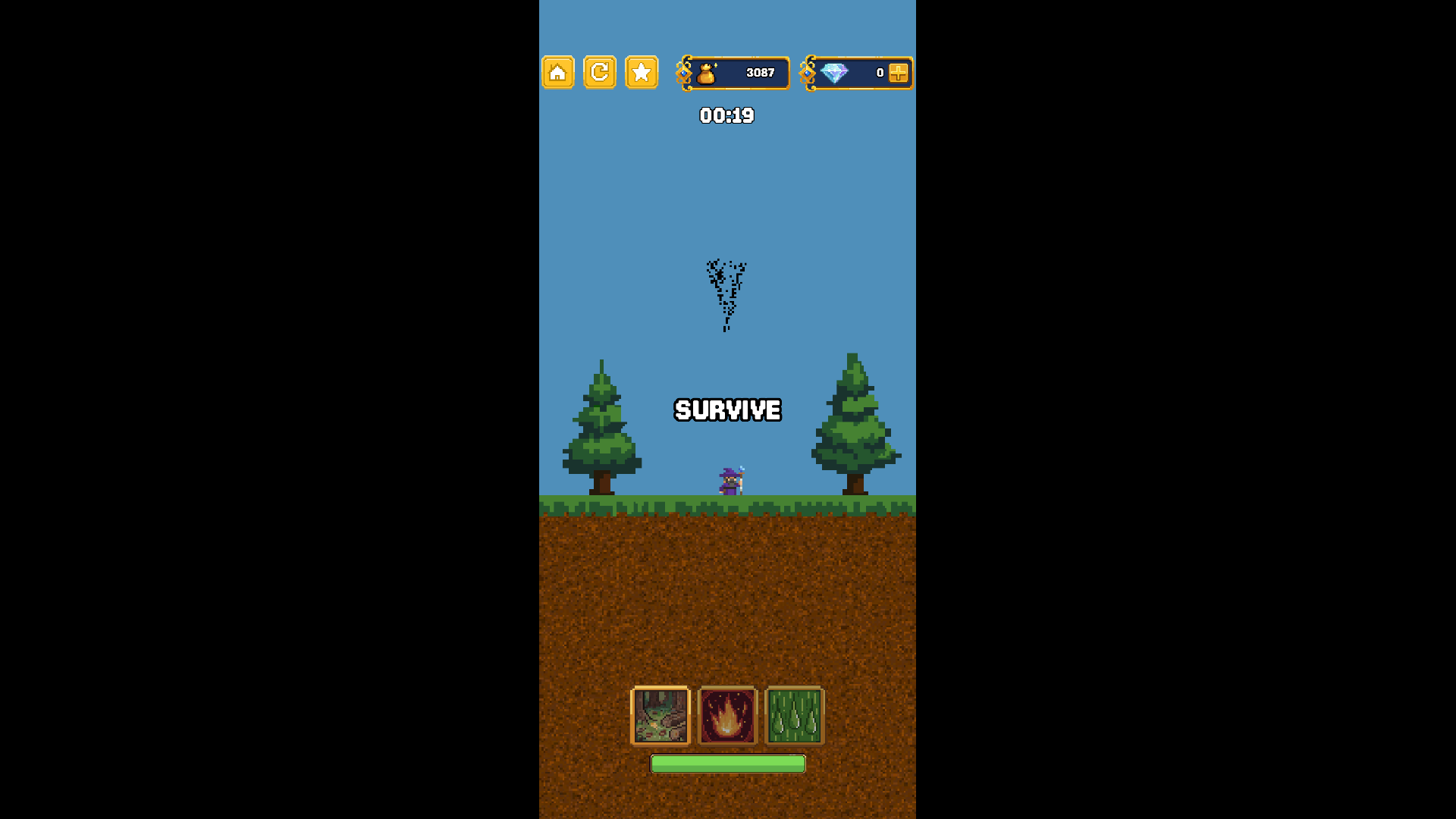 Collect Gold by excavating the terrain to unlock new Mages, Staffs, and Robes. There are no simple upgrades here—you must unlock and equip the right items to change your stats and gain unique passive abilities for each challenge.